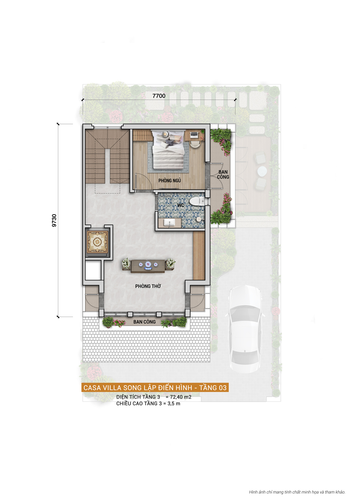 Kết cấu: 3 tầng + 1 hầm , 3 mặt sân vườn  mang đến không gian sống thoáng đãng và tiện nghi.